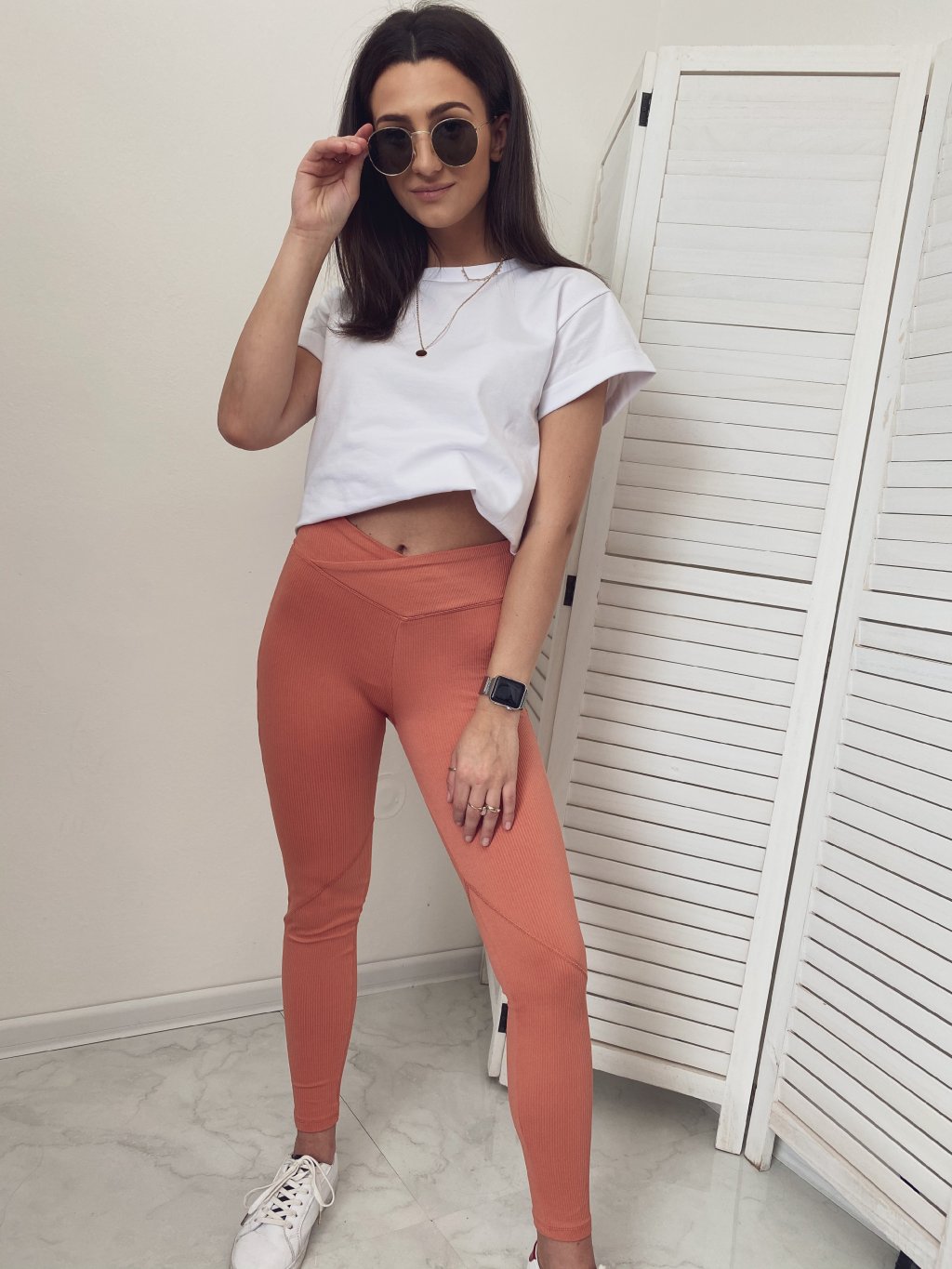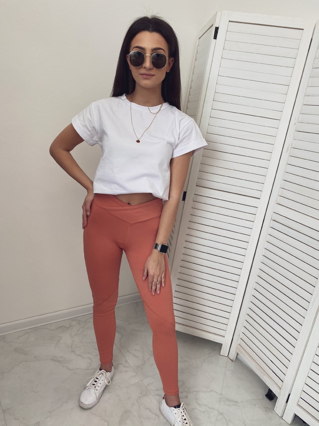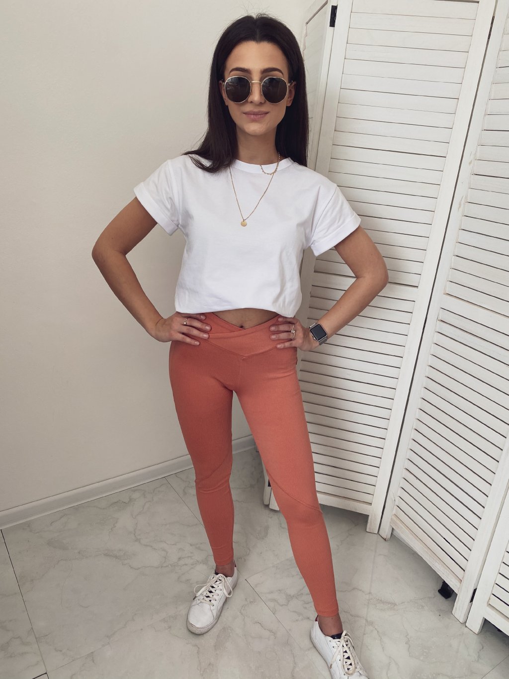 Skvělé elastické legíny s překříženým předním lemem jsou super záležitost nejen na cvičení. Mají nádhernou barvu a super elastický materiál, který není průhledný a skvěle tvaruje postavu. Modelka má na sobě velikost S. Běžně nosí vel. XS a měří 160 cm.