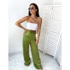 Tak tyhle kalhoty nás učarovaly! Perfektně sedí, jsou příjemné na těle a vypadají prostě luxusně! Váš outfit posunou úplně na jinou úroveň. Mají vysoký pas, falešné boční kapsy a široké nohavice. K pasu jsou přišité šňůrky, které můžete obmotat kolem pasu a vytvořit tak sexy efekt. Stačí doplnit tílkem nebo crop topem a můžete vyrazit ven lámat mužská srdce. Zaručujeme Vám totiž, že v těchto kalhotách budete sklízet spoustu komplimentů.