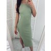 Super pohodlné šaty z žebrovaného materiálu, které se přizpůsobí vašim křivkám. Mají odhalená záda. Pokud nikdy nevyjdete ven bez podprsenky, doporučujeme vybrat typ bez ramínek a s úzkým zadním pásem nebo nalepovací. Šaty mají jeden rozparek na boční straně a délkou sahají do půlky lýtek. Můžete je sladit ležérně k teniskám, nebo elegantně k sandálkám. Velikost je univerzální a sedne všem s velikostí XS-L. Modelka měří 169 cm a běžně nosí vel. XS.