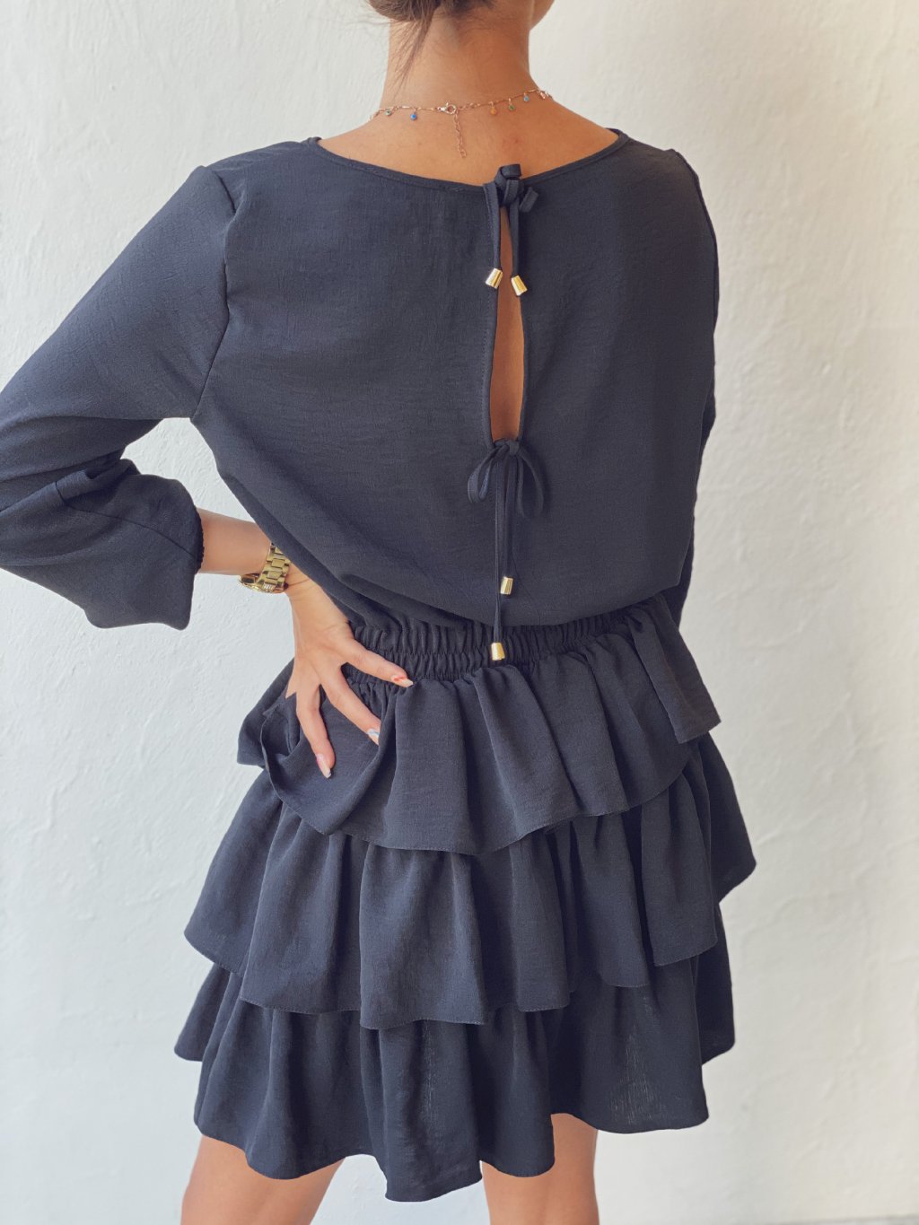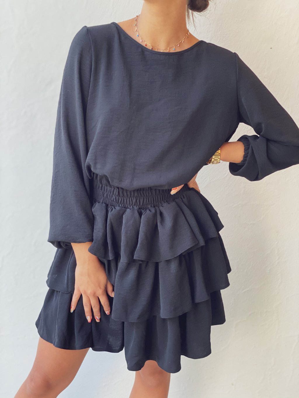 My jsme prostě milovníci podzimní kombinace šaty-křivák. Proto v naší kolekci nesměl chybět ani tento boží kousek. Volánková sukýnka, dlouhý rukáv a detail lehce odhalených zad. Tyto šaty si prostě zamilujete. Materiál je pevný a nemačkavý. Legenda praví, že jak je jednou oblečete, tak už je nevyslečete. Velikost S odpovídá XS/S a velikost M zase M/menší L. Na modelce s výškou 160 cm a velikostí XS jsme fotili šaty ve vel. S.
