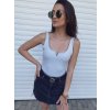 Body jsou skvělou náhradou tílek. Zapnutí je udrží na svém místě a nikde se vám nic nevyhrnuje a neroluje. Tohle body se sexy výstřihem v jemné šedé barvě hravě zkombinujete s jakýmkoli oblíbeným letním kouskem. Velikosti odpovídají menšímu číslování, doporučujeme tedy zvolit o číslo menši než běžně nosíte. Pokud si nejste jistí s výběrem, kontaktujte nás, rádi Vám poradíme. Modelka má na sobě vel. S, měří 160 cm a běžně obléká vel. XS.